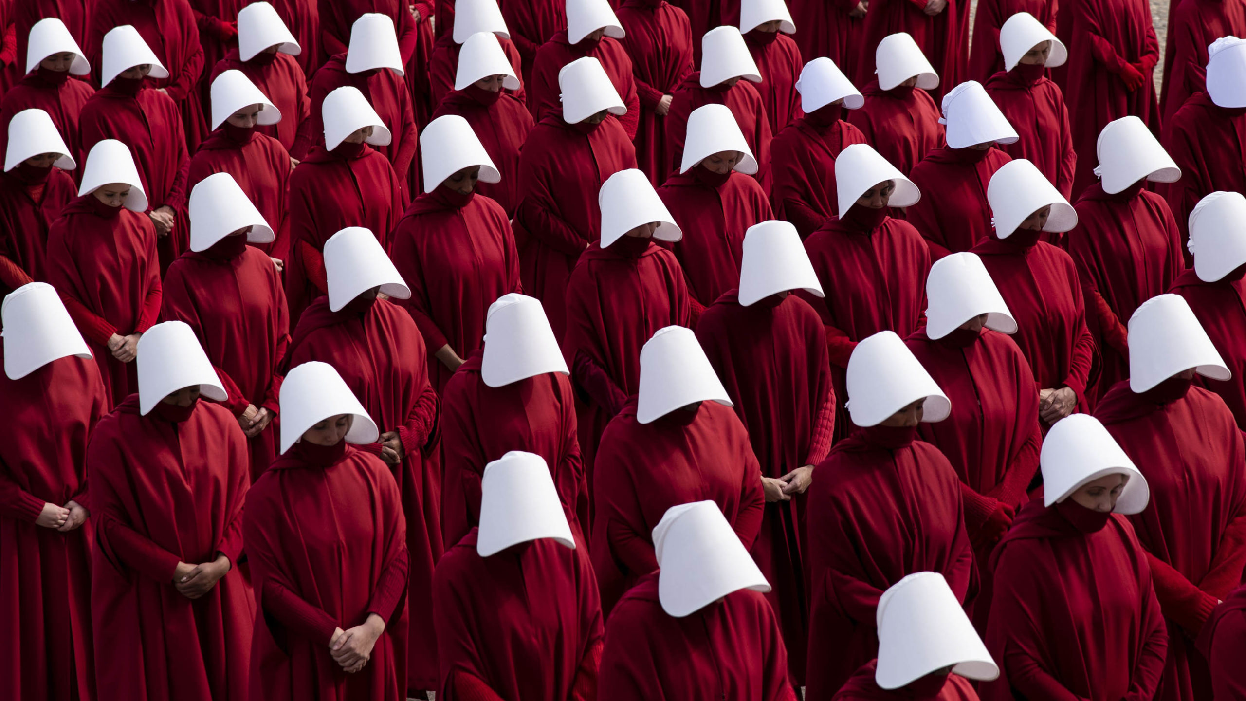 There are Handmaid’s podcasts, Facebook fan pages, an opera, a ballet. All over the world, women protesting against threats to their rights have taken to dressing in the unmistakable handmaid’s uniform of red gown and white wings bonnet.