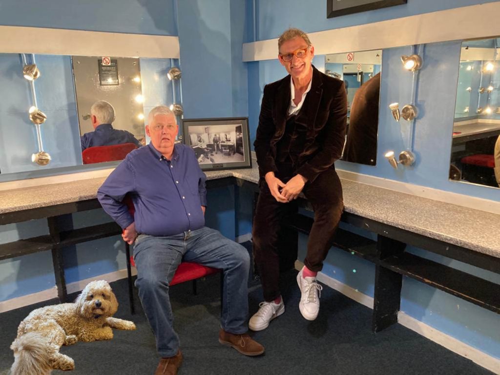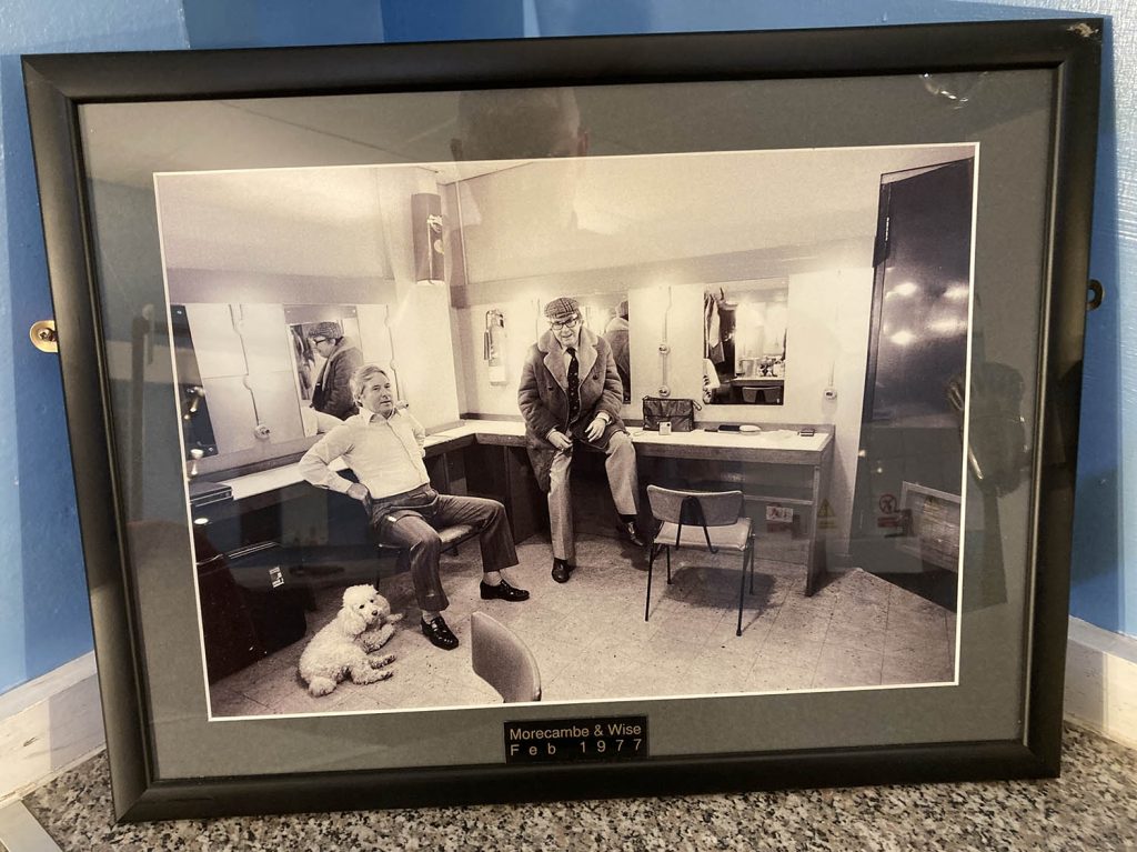 “He was just checking up on you,” I said, which got a laugh. “I’ve told you not to be funny,” said Tony, in mock admonishment. The dressing room at the Alban Arena (formerly the Civic Centre) was also a highlight. It contains a picture of Morecambe and Wise there in 1977, with Ernie’s dog at his feet. We decided to recreate it – with Tony as Eric, naturally, and me the one with the short, fat, hairy legs – and Tony even had his and Poppy’s similarly fluffy pooch Lady Kevin (don’t ask me) Photoshopped into it.